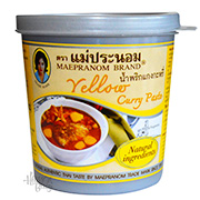 З пастою Yellow curry paste легко приготувати жовте каррі (Gaeng Kari). Просто додайте кокосове молоко, м'ясо по вашим вибором (курка або яловичина), картопля, цибуля і приправу за смаком. Подавати з рисом або роти (круглий коржик, виготовлена з цільнозерновий борошна і води), маринованим огірком і червоним шалот.