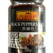 Склад: вода, цукор, соєвий соус, сіль, томатна паста, екстракт дріжджів, чорний мелений перець 4%, барвник, часник сушений, модифікований кукурудзяний крохмаль, соєва олія, лимонна кислота, підсилювач смаку.