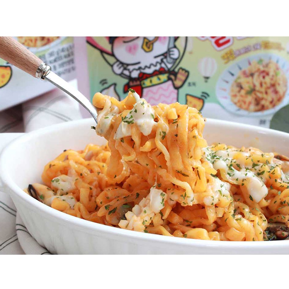 - суп 18.6%: вода, цукор, сирний соус, порошок штучного курячого ароматизатора (глютен, соя), штучний курячий ароматизатор (глютен, соя), цільне сухе молоко, підсилювач смаку E621, соєва олія, порошок перцю чилі, цибуля, екстракт дріжджів , червоний перець пудра, часник, олія насіння червоного перцю, модифікований картопляний крохмаль, сіль, знебарвлений чилі екстракт, екстракт паприки, чорний перець пудра, порошок каррі (глютен, соя);