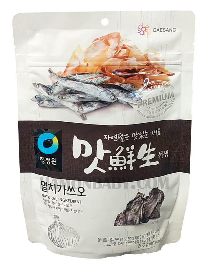Бульйон із морепродуктів з анчоусами є головним інгредієнтом багатьох корейських страв. Склад: приправа анчоусна (порошок), сіль, глюкоза, кукурудзяний сироп (порошок), суповий бульйон, соєвий соус (порошок), екстракт анчоусів, екстракт дріжджів (порошок), желатинізований рис (порошок), екстракт овочів, екстракт ламінарії.