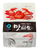 Склад: приправа з анчоусів, сіль, глюкоза, часник, креветки (порошок), цибуля, рисова мука, мідії (порошок), червоний краб (порошок), перець червоний мелений.