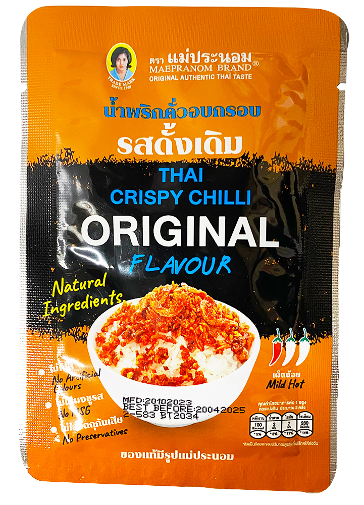 Склад: сушений перець чилі 20%, цибуля шалот 30%, часник 30%, дегідровані креветки, соєва олія, кокосовий цукор, тамаринд, сіль.