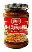 Склад: вода, солоний перець чилі, харчова сіль, часник, пшеничне борошно, немодифіковані соєві боби, сироп фруктози, глутамат натрію, ацетильований фосфат крохмалю, харчова сіль, пивоварний оцет, білий цукор-пісок, рослинна олія, бензоат натрію, сорбат калію.