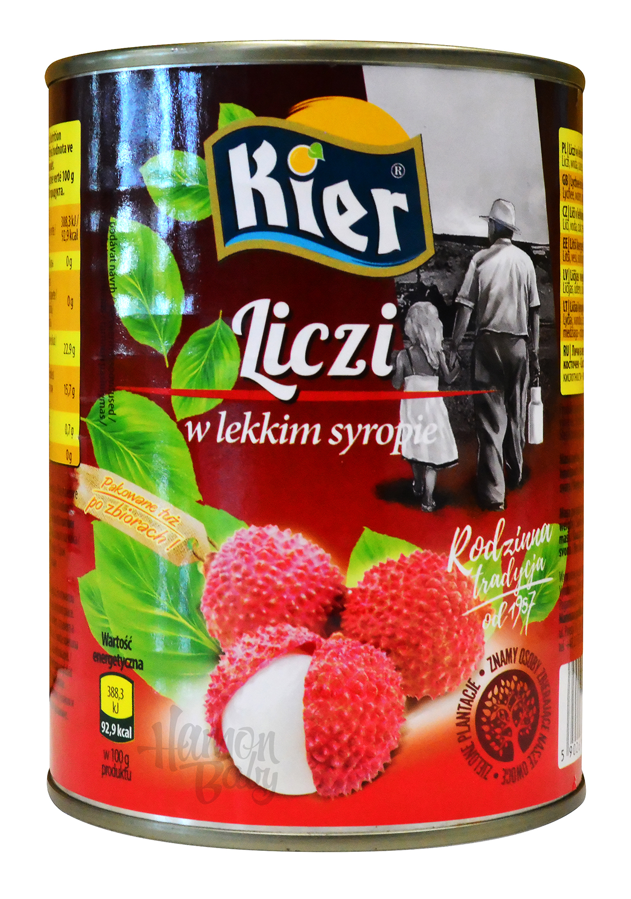 Склад: лічі, вода, цукор, лимонна кислота. Харчова цінність 100 г: жир 0 г, вуглеводи - 22,9 г, білок 0,7 г, сіль 0 г Енергетична цінність 100 г: 92,9 ккал.