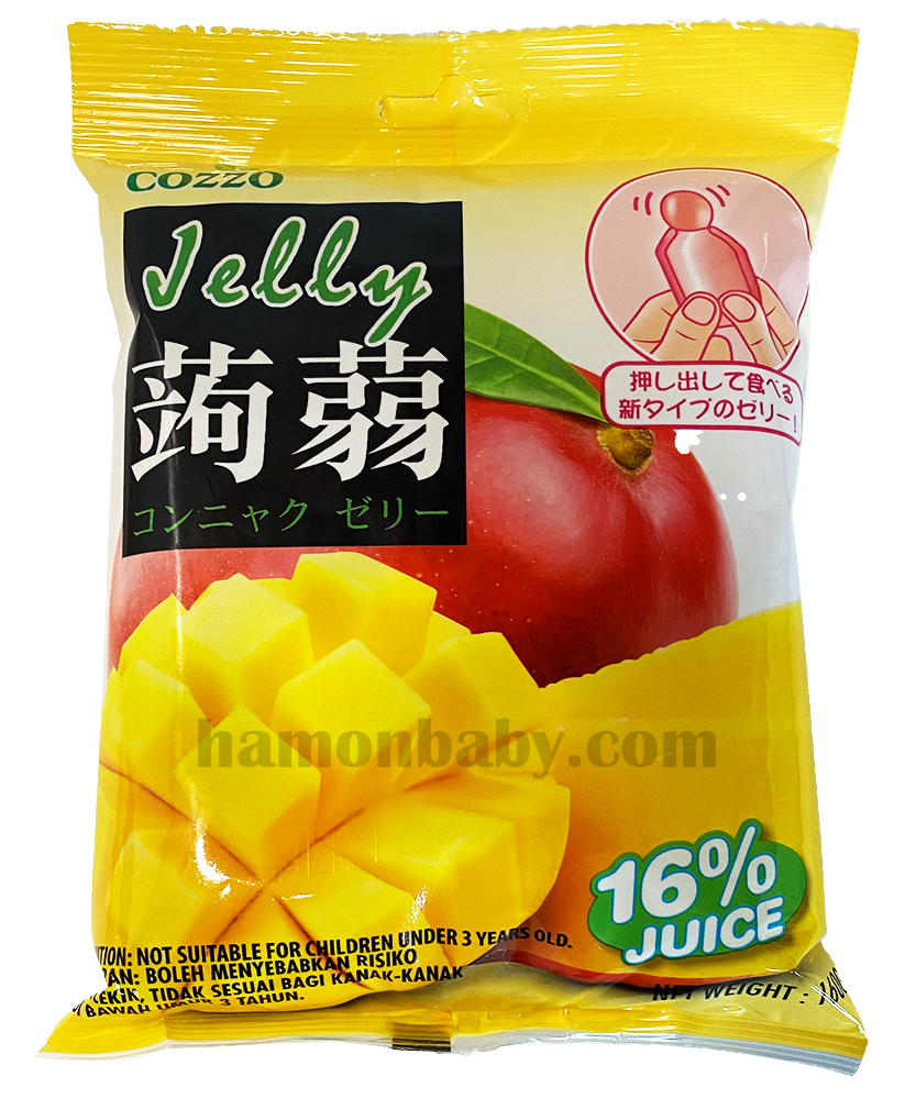 Склад: вода, цукор, сік манго, гелеутворювач (Е407, Е425i, Е410), лимонна кислота, яблучна кислота, штучний аромат та колір (Е102, Е129).