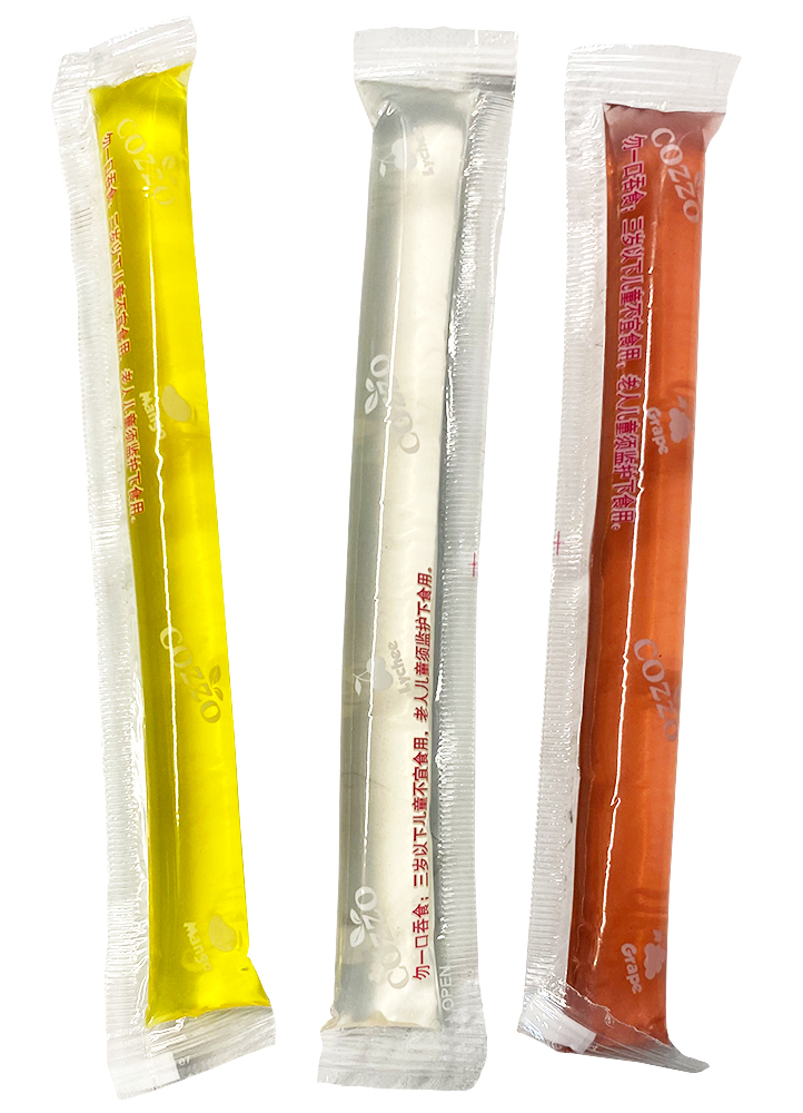 Склад: вода, цукор, фруктовий сік (манго, яблуко, червоний виноград, лічі), гелеутворювач (Е407), регулятор кислотності (Е330), штучний аромат, харчовий барвник (Е102, Е129, Е133).