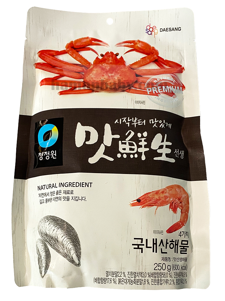 Склад: приправа з анчоусів, сіль, глюкоза, часник, креветки (порошок), цибуля, рисова мука, мідії (порошок), червоний краб (порошок), перець червоний мелений.