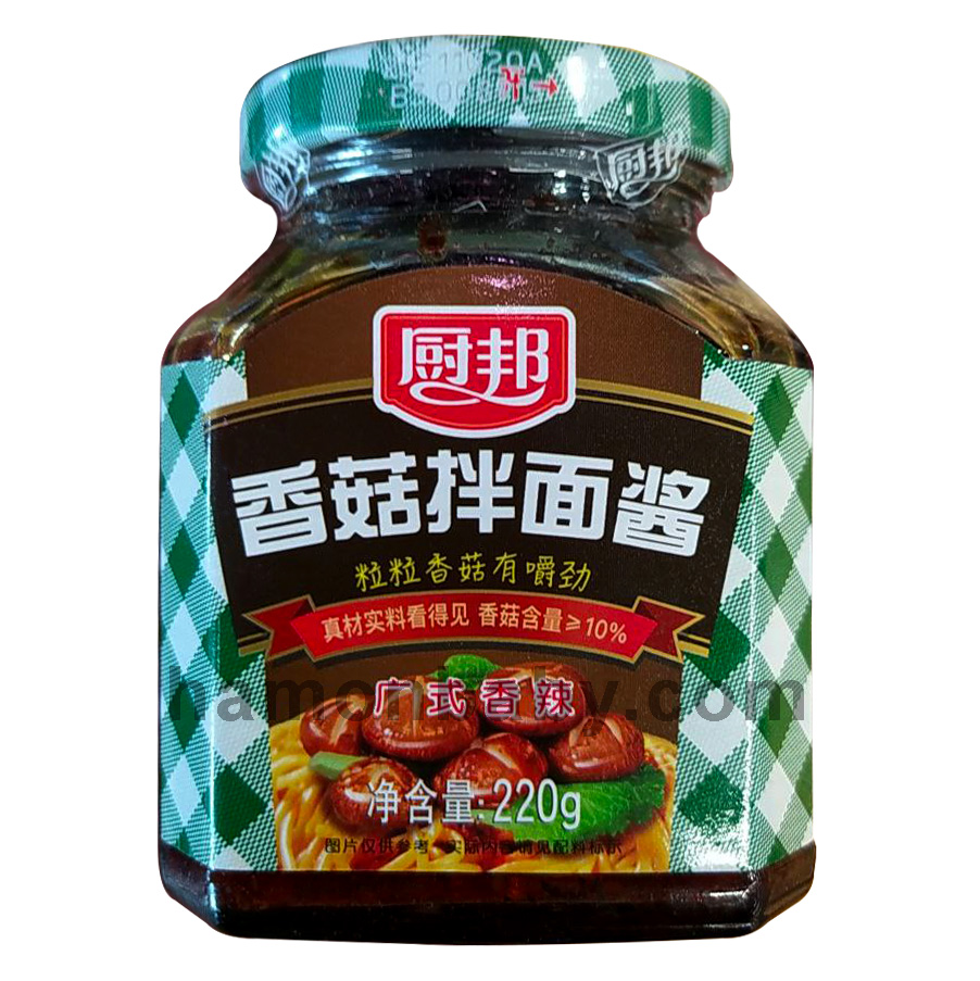 Склад: олія рослинна, соєві боби, вода, гриби шиїтаке (>10%), часник, перець, цукор, оцет, сіль, глутамат натрію, куркума.