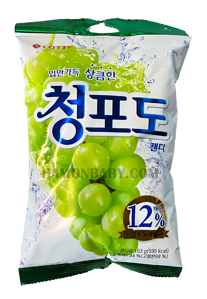 Склад: цукор, крохмальний сироп, концентрований сік зеленого винограду 1.94%, регулятор кислотності І та ІІ, синтетичний ароматизатор (зелений виноград), крохмаль, змішаний препарат (пігмент гардинію синій, пігмент куркуму, пропіленгліколь), суміш кулінарної олії.