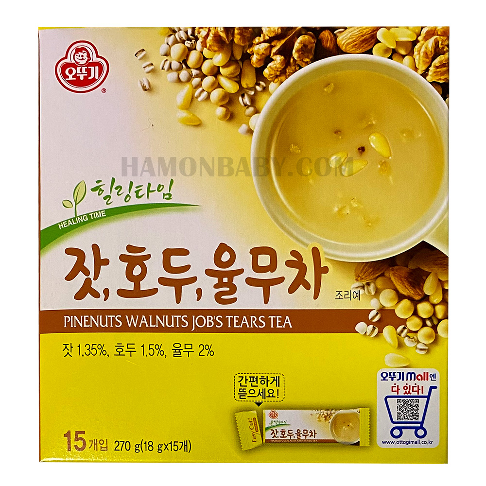 Різні горіхи та злаки, такі як кедрові горіхи, волоські горіхи, мигдаль, адлай, соя та рис є основними інгредієнтами цього зернового чаю, насичений багатими поживними речовинами та глибоким пікантним смаком.