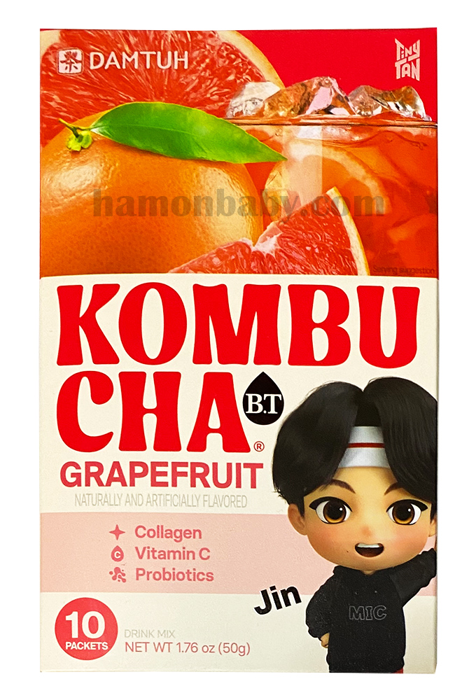 Склад: лимонна кислота, бікарбонат натрій, сік грейпфрута (пудра) (сік грейпфрута 85 %, мальтодекстрин, пектин, силіконовий діоксид), рибний колаген (пудра), камбуча (пудра), штучний аромат (грейпфрут), вітамін С, суміш сироп, arabiagum, сорбітол, декстрин, ефір цукру, модифікований жир), екстракт гібіскусу (пудра), екстракт гуарани (пудра), пробіотикс, чорний чай екстракт (пудра), сукралоза, еластин, гіалуронова кислота.