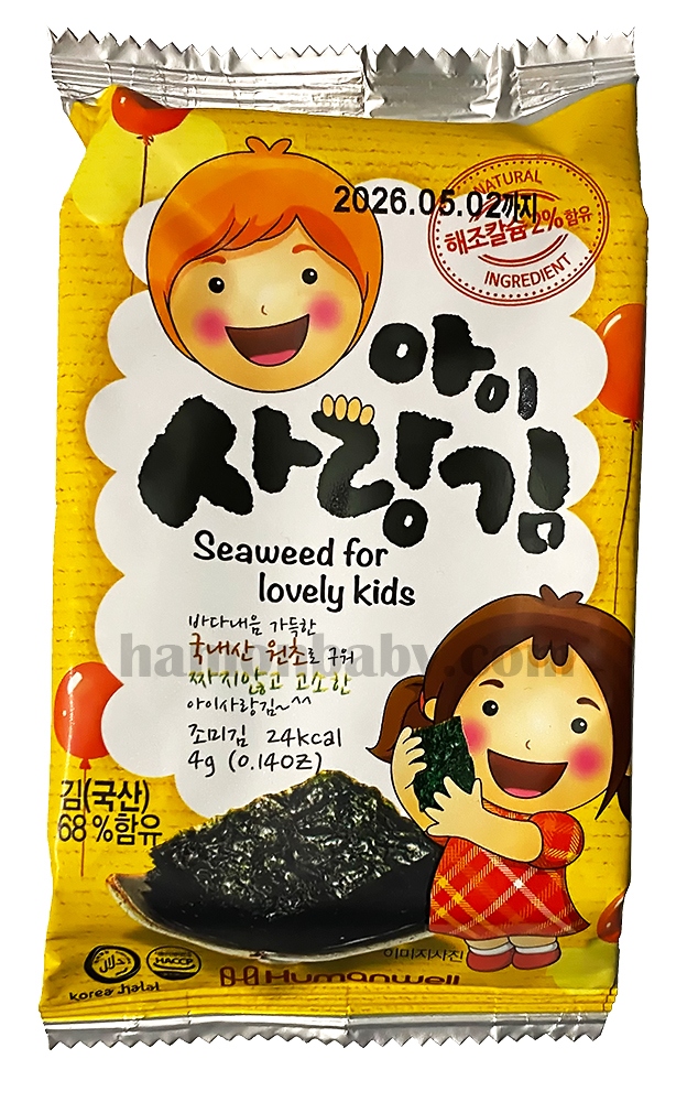 Склад: сушені морські водорості 68%, кукурудзяна олія 18%, кунжутна олія 8%, кальцій із водоростей 2%, глюкоза 2%, сіль 2%, смажена сіль 1%.