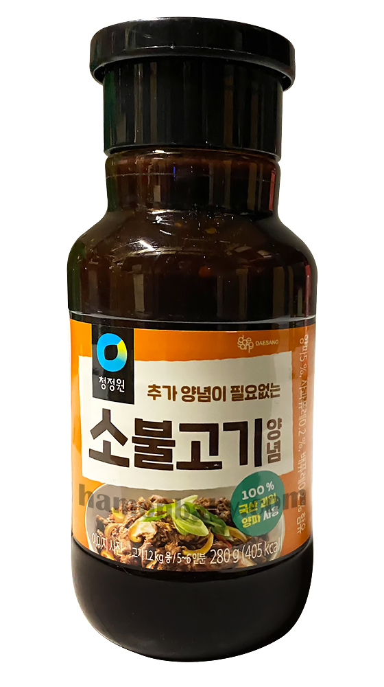 Склад: вода, сіль, часник, цукор, соєвий соус, кукурудзяний сироп, глутамат натрію, яблучне пюре, грушеве пюре, кулінарне вино, пюре з ківі, пюре з ананаса, чорний перець, ксантанова камедь, гуарова камедь.
