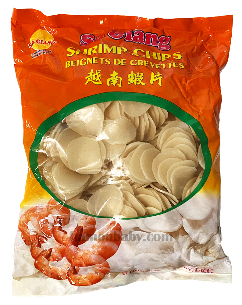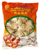 Склад: крохмаль тапіоки 77%, креветки 10%, цукор, сіль, часник, підсилювач смаку Е621, регулятор кислотності Е330, розпушувач Е500.