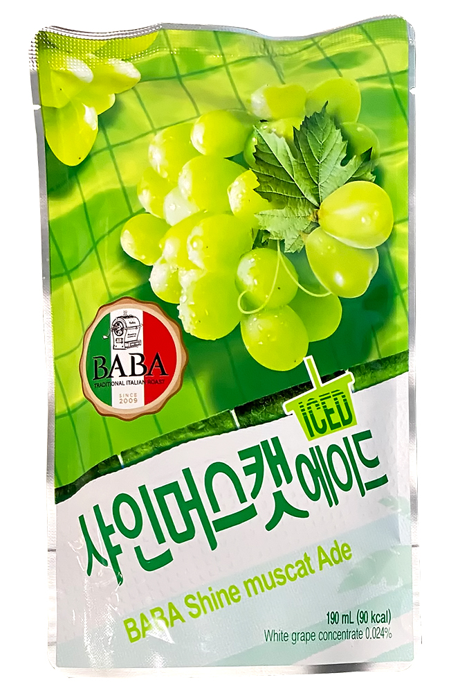 Склад: вода, цукор, концентрат білого винограду, підсолоджувач (Е955), декстрин, регулятор кислотності (Е330, Е331iii), ароматизатор, яблучний концентрат, антиоксидант Е300, барвник (Е102, Е133).