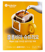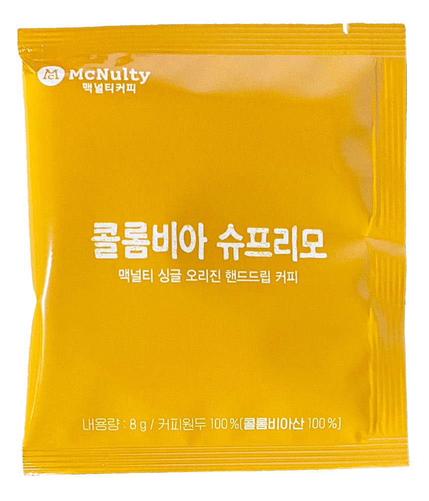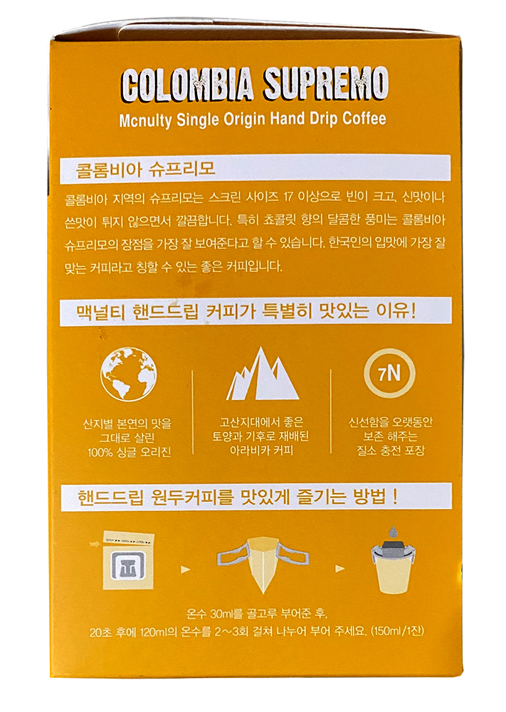 Склад: кава мелена 100% колумбійська. Харчова (поживна) цінність 8 г: жир 0 г, вуглеводи 0 г, білок 0 г, натрій 0 мг. Енергетична цінність 8 г: 5 ккал.