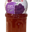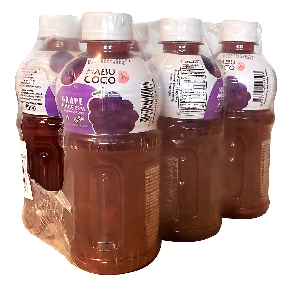 Склад: вода 36,71%, виноградний сік (з концентрату виноградного соку) 25%, кокосові вершки (nata de coco) 25%, сироп фруктози 10%, цукор 3%, регулятор кислотності Е330, аромат винограду, гелеутворювач Е418, консервант Е211, штучний фарбник Е129, Е133.