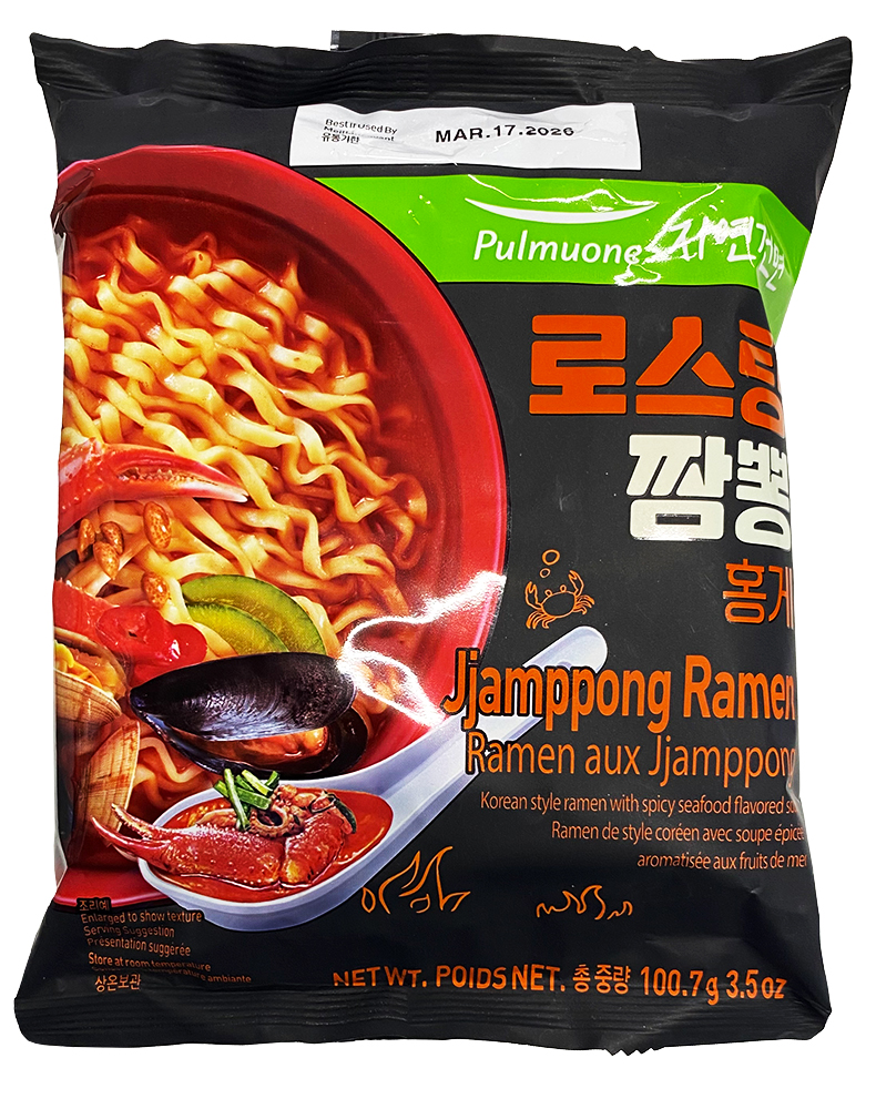 10-1164 Локшина пшенична,не смажена гостра Рамен Jjamppong (Jjamppong Ramen) зі смаком морепродуктів, 100,7 г, ТМ Pulmuone, Республіка Корея