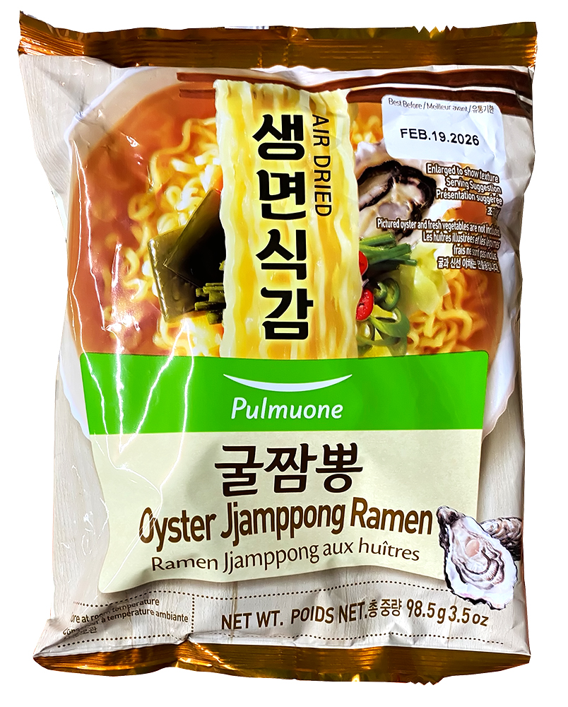 10-1166 Локшина пшенична не смажена Рамен Jjamppong зі смаком устриць (Oyster Jjamppong Ramen), 98,5 г, ТМ Pulmuone, Республіка Корея