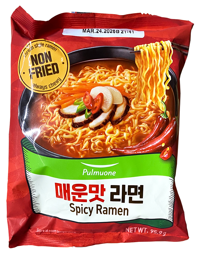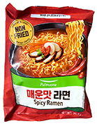 10-1169. АКЦІЯ !!!Локшина пшенична не смажена Рамен, гостра (Spicy Ramen), 95,9 г, ТМ Pulmuone, Республіка Корея