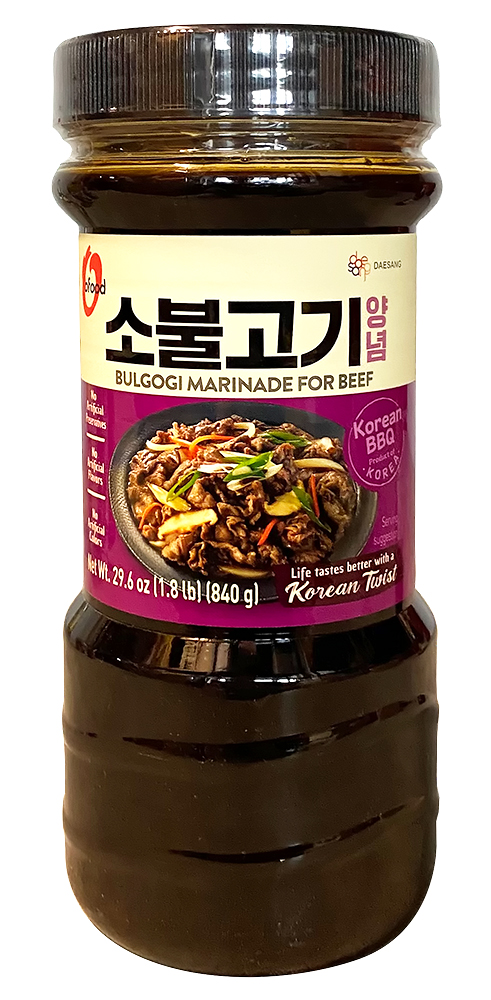 Склад: соєвий соус (соя, пшениця, сіль, вода, кукурудзяний сироп, спирт), кукурудзяний сироп з високим вмістом фруктози, вода, яблучне пюре, грушеве пюре, часник, цукор, підсилювач смаку (E621), сіль, спирт, ківі пюре, ананасове пюре, чорний перець, кулінарне вино, ксантанова камедь, підсилювач смаку (E631, E627), гуарова камедь.