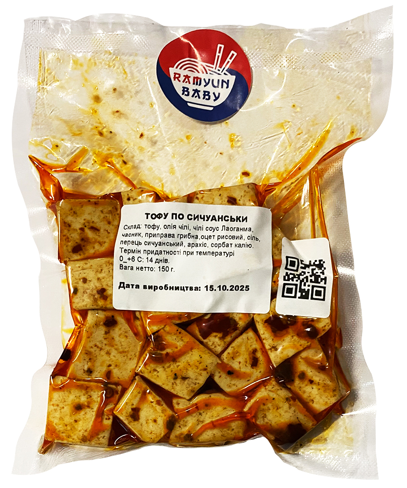 Склад: тофу, олія чілі, чілі соус Лаоганма, часник, приправа грибна, оцет рисовий, сіль, перець сичуанський, арахіс, сорбат калію.
