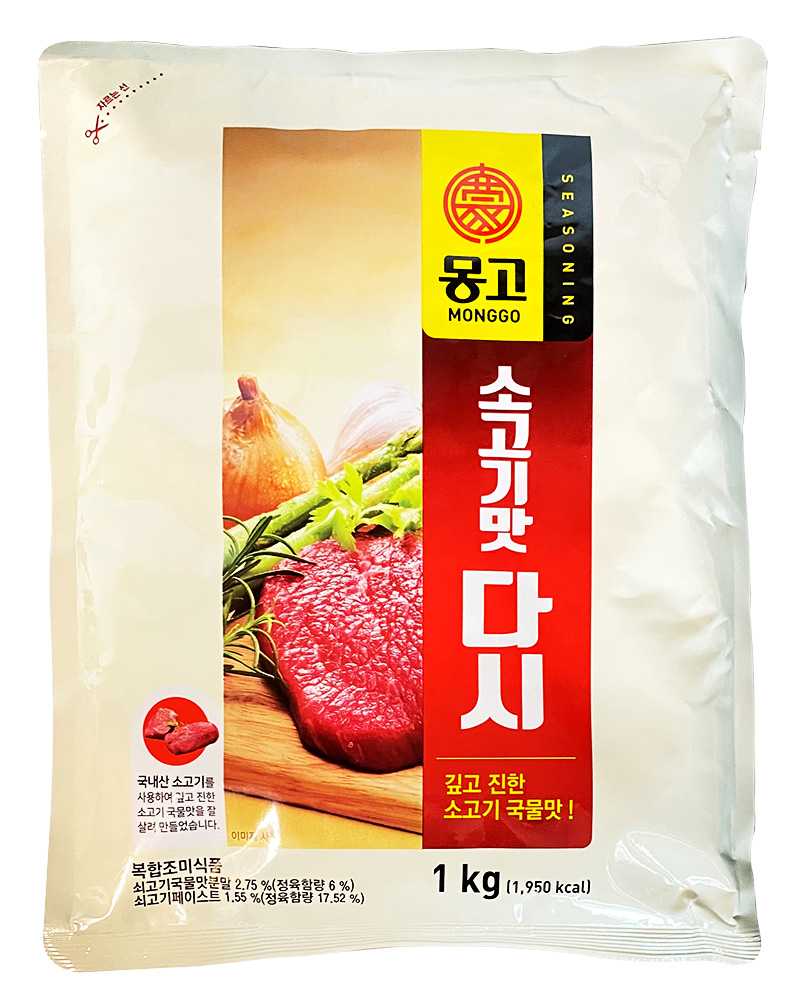 Склад: сіль, глутамат натрію, цукор, кукурудзяний крохмаль, екстракт з яловичих кісток, паста-приправа, соус, кукурудзяне борошно, декстрин, порошок соєвого соусу, комплексна приправа, яловичий жир, гідролізований рослинний білок, яловича паста, яловичий бульйон (порошок), часник (пудра), Е627, Е631, олеорезин, чорний перець, карамель.