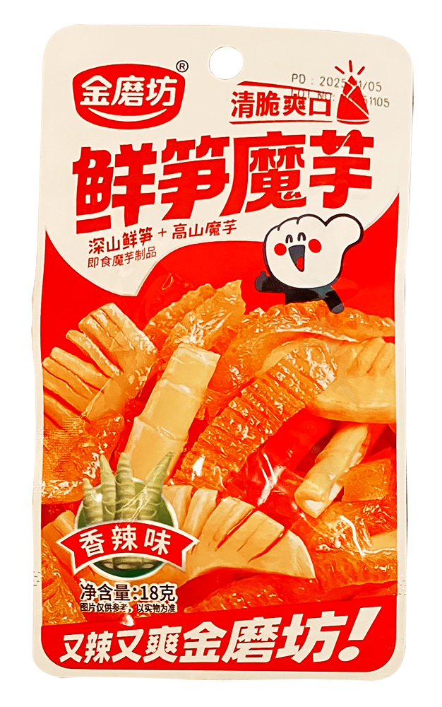 Склад: вода, порошок конжака, крохмаль, харчові ароматизатори, пагони бамбука, приправи. Харчова (поживна) цінність у 18 г: білок 0,2 г, жир 0,8 г, вуглеводи 2,4 г, натрій 227 мг. Енергетична цінність на 18 г: 17,6 ккал.